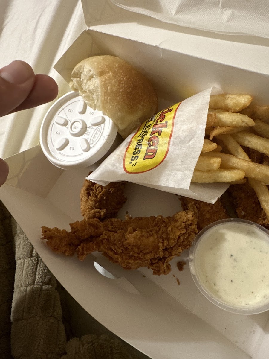 Spicy chicken strips were good. The food is always decent here. Servers weren't very friendly and they charged for dipping sauces. Other than that it was good.
